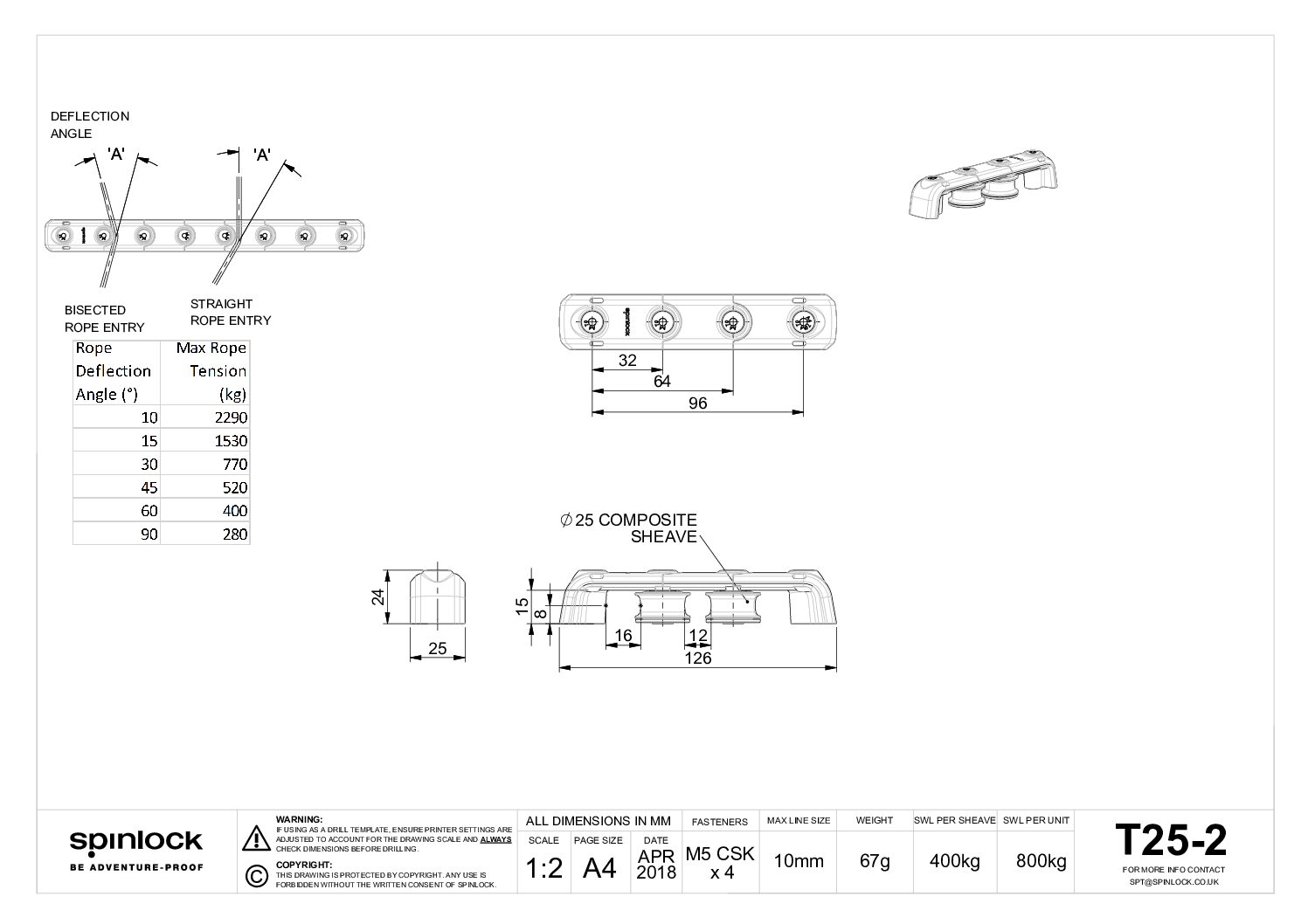 Technische specificaties Spinlock Organiser A-symmetrisch 25 mm